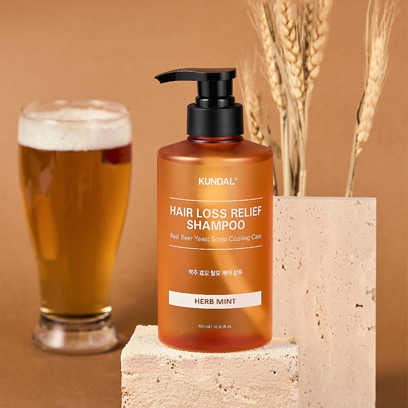 The KUNDAL Beer Yeast Scalp Shampoo in Herb Mint is a revitalizing hair care solution formulated with 10,780 ppm German Brewer's Yeast Extract, rich in biotin to promote hair strength and prevent breakage and hair loss. This shampoo deeply cleanses the scalp, removing impurities, excess oil, and up to 98.6% of ultra-fine dust while reducing dead scalp cells by 36%.