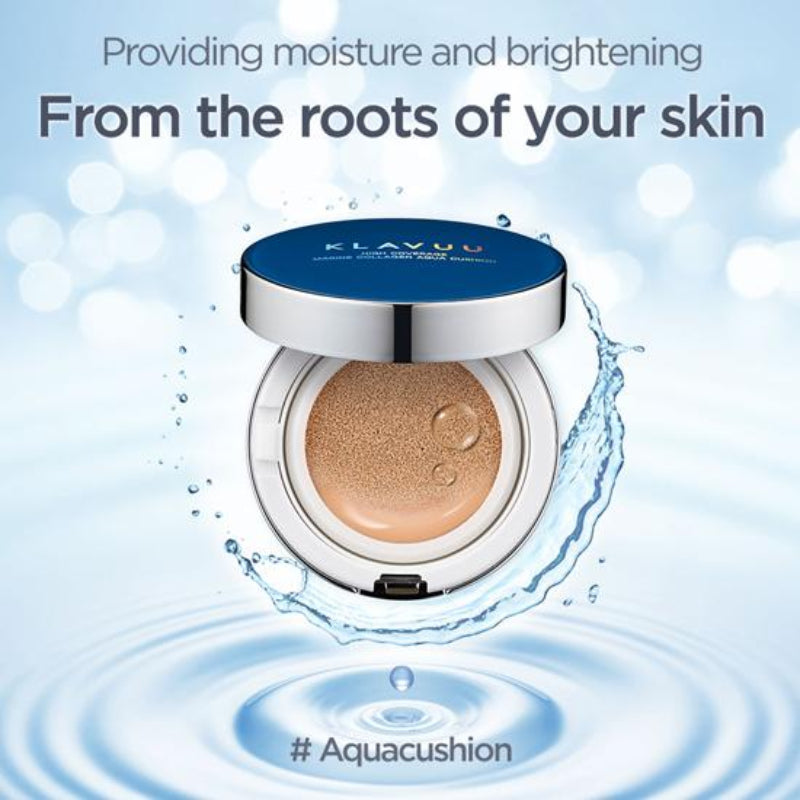 The Klavuu Blue Pearlsation High Coverage Marine Collagen Aqua Cushion is a cushion compact that instantly provides weightless color correction for any skin concern and offers hydration for a bright, flawless complexion. Using a one-of-a-kind foundation applied through an innovative air cushion that blocks UV rays and covers imperfections naturally.