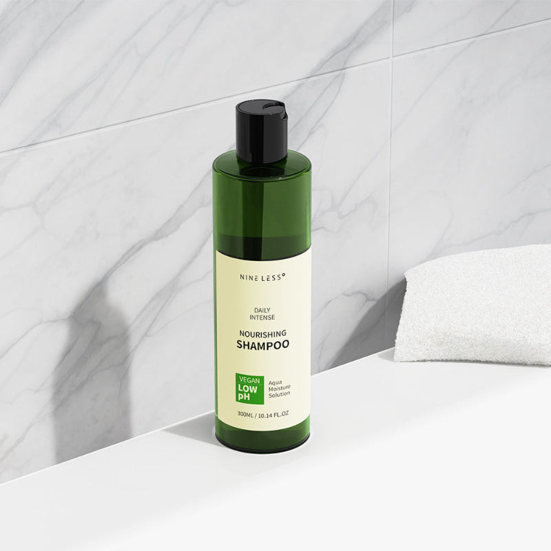 The Nine Less Daily Intense Nourishing Shampoo is a low pH shampoo that is suitable for everyday use. It works to gently provide nourishment without drying out the hair, and does not cause breakage.