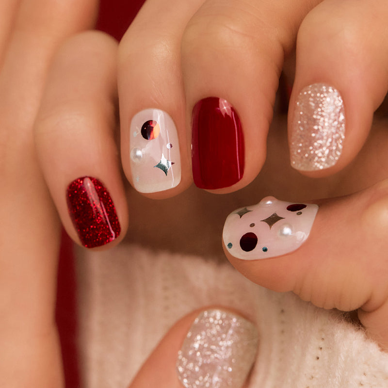 Elevate your glamour with this magical design! Rich in true love, it features red syrup, sequins, silver sequins, and pearl sequins for a stunning finish. With red foil embellishments adding a lovely touch, it's the perfect blend of fashion and cuteness, guaranteed to catch eyes!