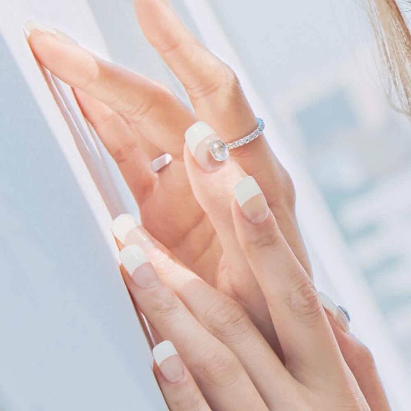 Elevate your manicure to regal status with Ohora N Queen, a majestic upgrade from the traditional French nail design. This luxurious ensemble features a clear gel base adorned with thick white gel tips, exuding sophistication and elegance. Adding a touch of opulence, bold rhinestone accents embellish the tips, imparting a regal sparkle fit for a queen. With its refined aesthetic and royal charm, Ohora N Queen offers a modern twist on a timeless classic, ensuring your nails reign supreme with unparalleled beauty and grace.