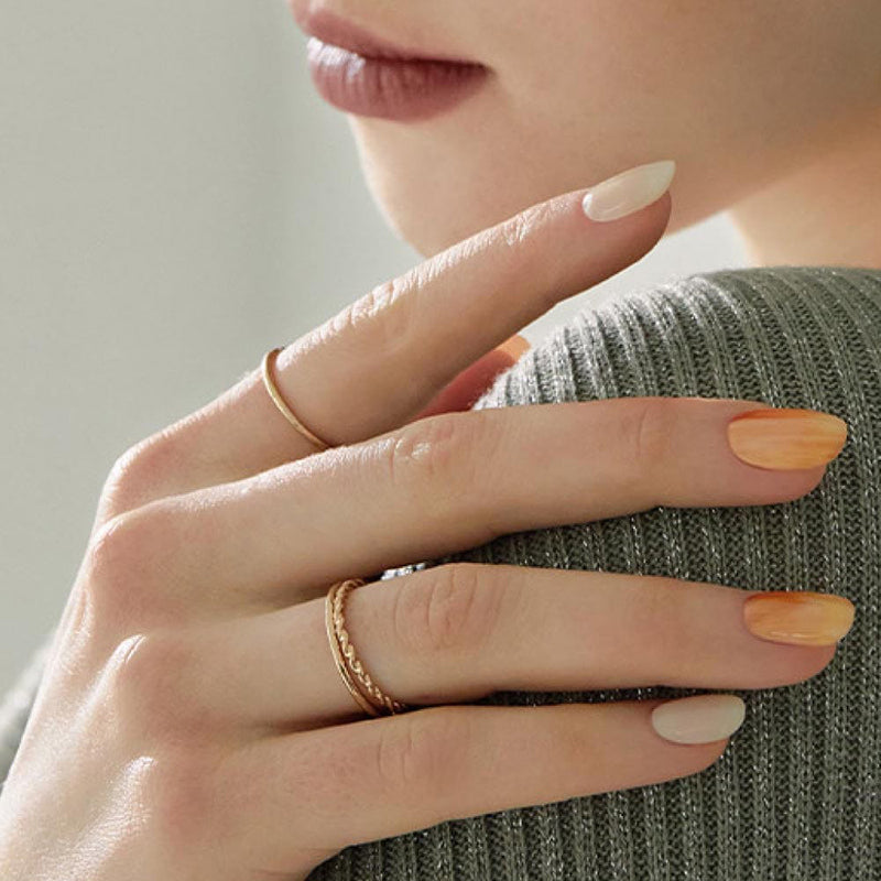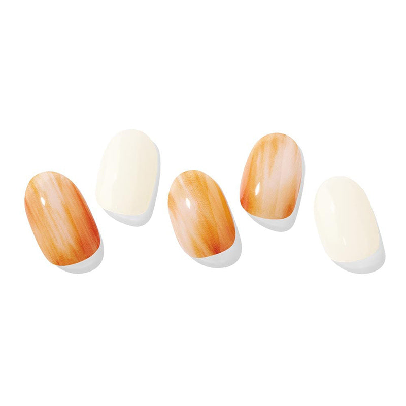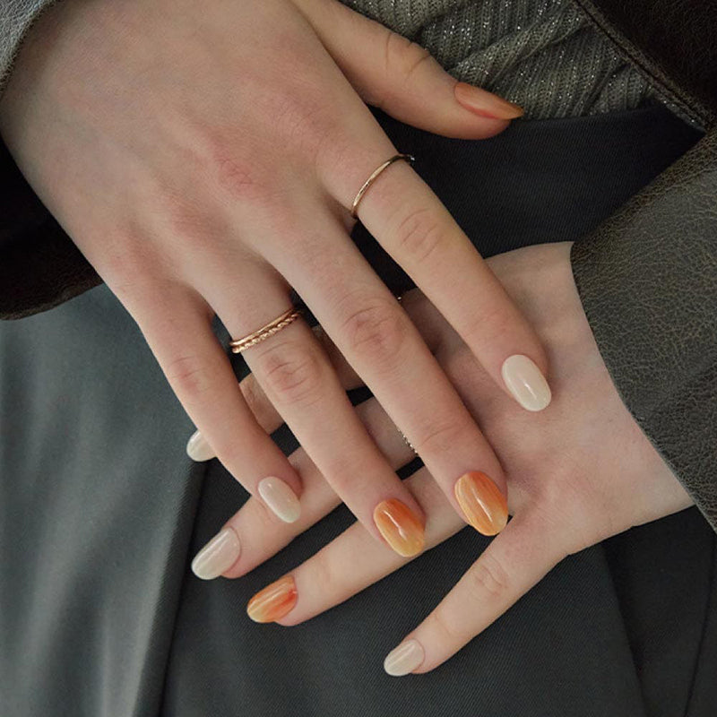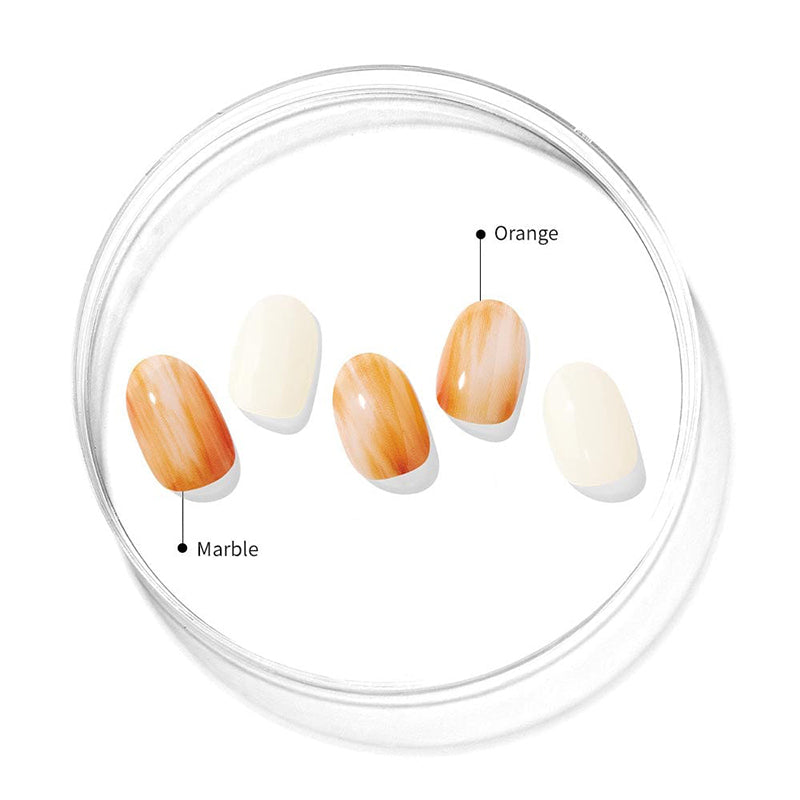 Indulge in the sunset-inspired beauty of this sensual marbled manicure. Combining burnt orange and vivid white gel, it captures the essence of the sun sinking into the horizon.
