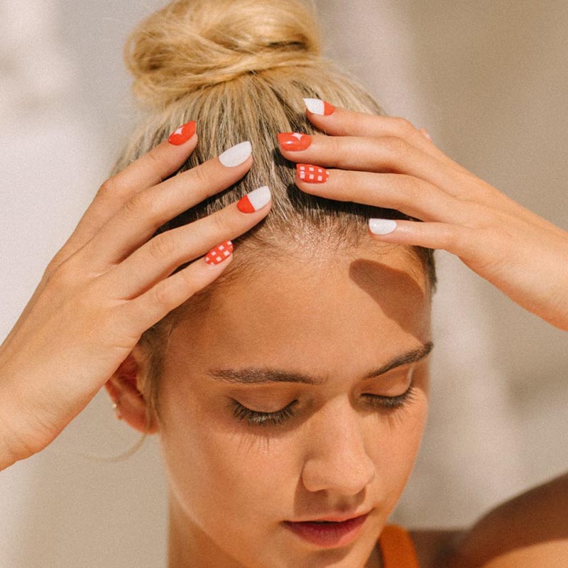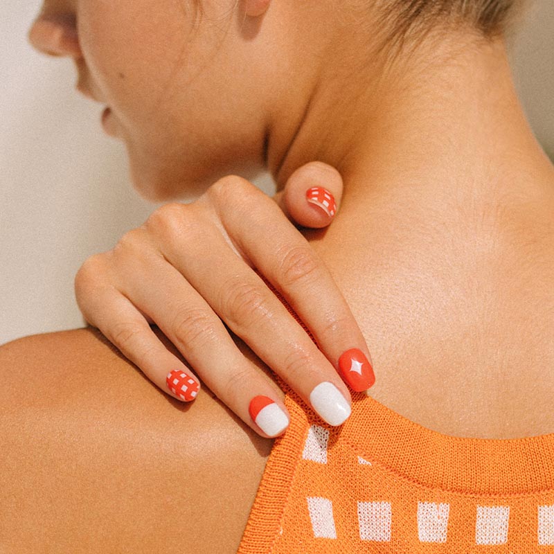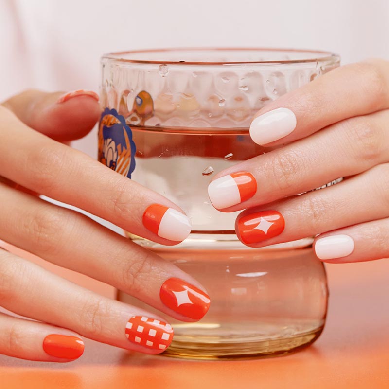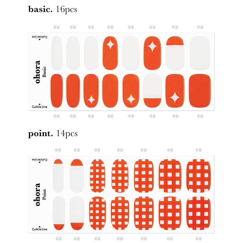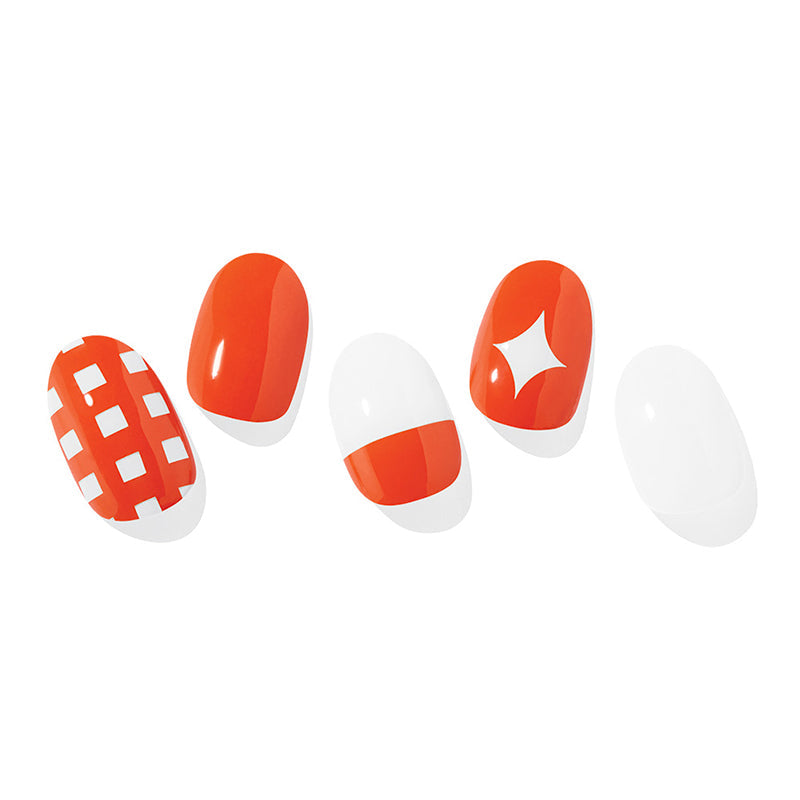 Brighten up your nails with the Ohora N Tangerine gel manicure, inspired by the vibrant hues of fresh tangerines. This lively set combines bold orange and crisp white gel in playful checkered patterns and star motifs, adding a fun pop of color and style to your fingers. Perfect for those who want a trendy and eye-catching look, this easy-to-apply gel manicure delivers a fresh, fruity flair that's sure to stand out.