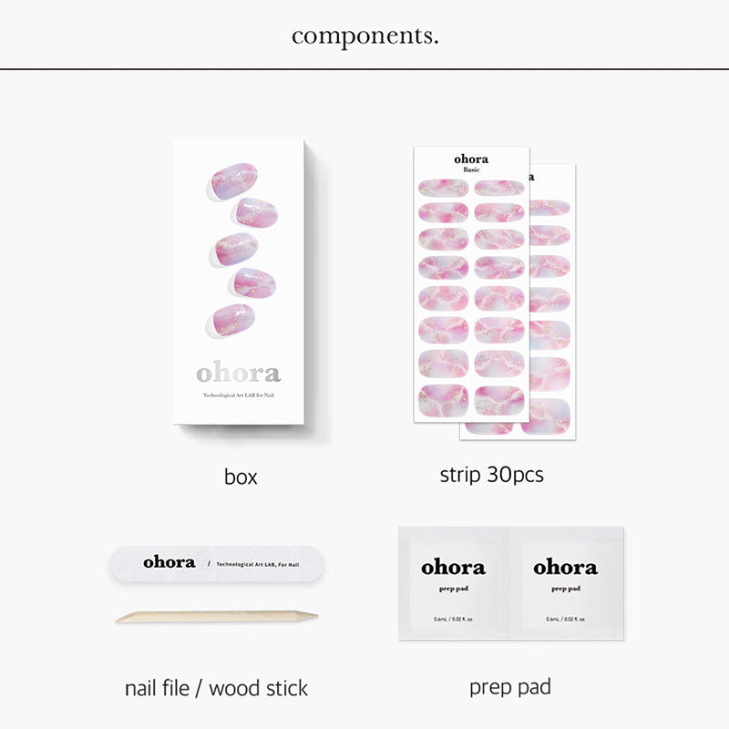 The Ohora N Unicorn Dream nail design embodies the whimsy and enchantment of a unicorn's dream with its sparkling sugar-like glitter, glistening gold foil, and delicate pastel marbling. Each element comes together to create a mesmerizing and ethereal aesthetic that captures the imagination. Whether you're seeking a touch of magic for a special occasion or simply embracing your inner dreamer, this manicure offers a delightful and enchanting way to adorn your nails, adding a sprinkle of fantasy to your fingertips.