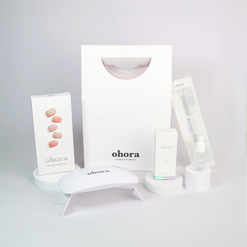 Elevate your at-home manicure game with the Ohora Starter Kit, your all-in-one solution for salon-quality nails. This comprehensive set includes everything you need for a flawless manicure, from the charming Lazy Sunday nail strips to the Gel Lamp for professional-quality curing. With the Pro Easy Dual Stick for easy application, Pro Glossy Top Gel for a high-shine finish, and Gel Nail Remover for hassle-free removal, achieving a perfect manicure has never been easier. Embrace the beauty of a pretty pink mani adorned with intricate gold accents and watercolor-inspired pearl decals, and indulge in a pampering nail experience from the comfort of your own home.