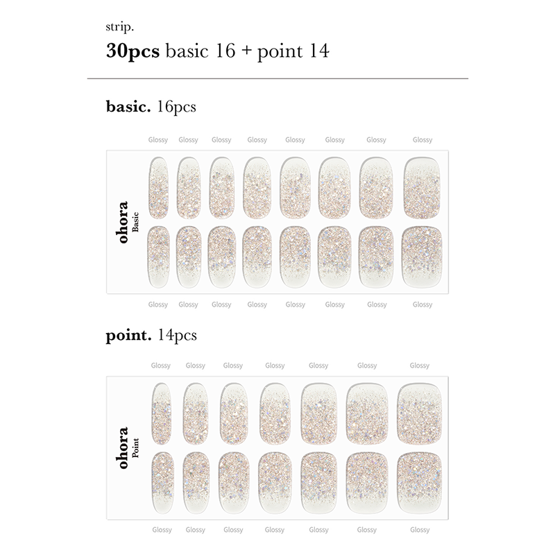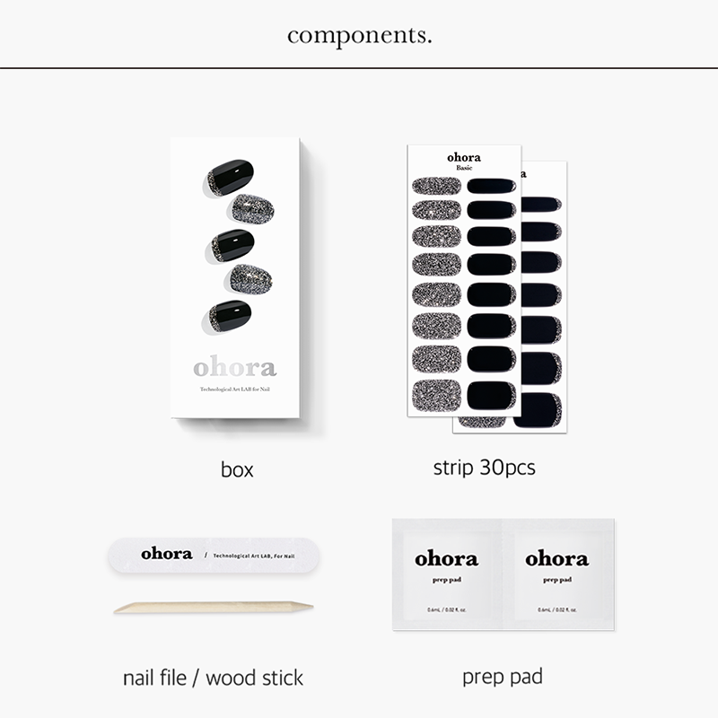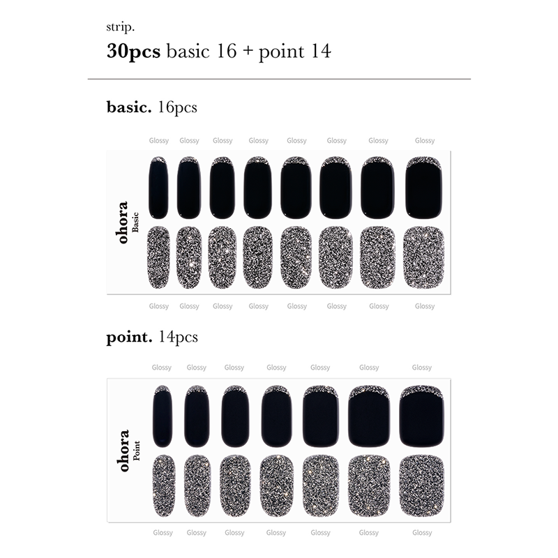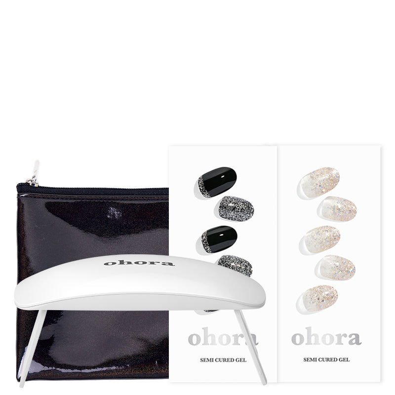 Elevate your nail game with the Ohora Sparkle Collection, a must-have for creating dazzling, salon-quality manicures at home. This set includes two stunning gel nail strip designs: 'N Party Night', a chic combination of black and silver glitter that adds glamorous flair, perfect for a night out, and 'N Sparkle Glam', featuring a breathtaking ombre of rose gold and chunky holographic glitter for a festival-ready look. Complete with a Gel Lamp for a flawless finish and an Ohora Pouch for easy storage, this collection offers everything you need to shine at any occasion.